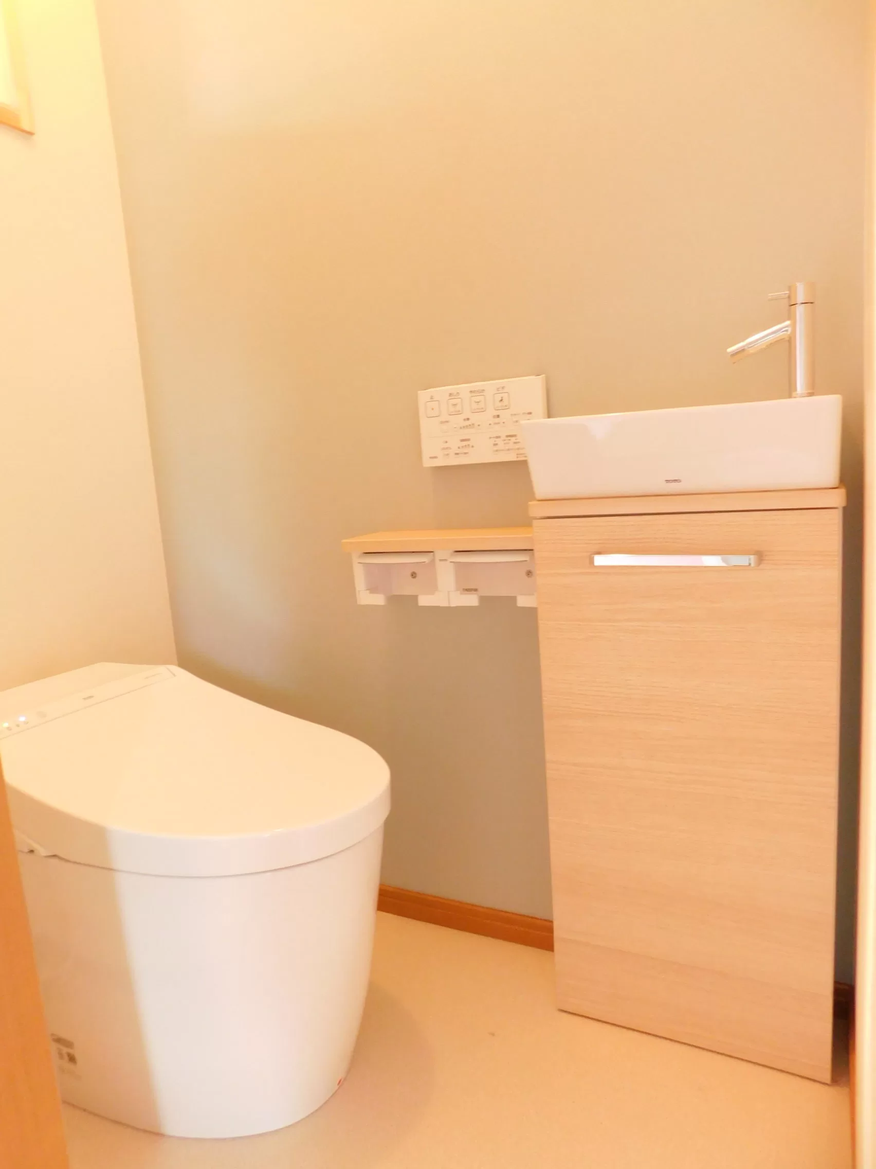 トイレはタンクレスに替え、別に手洗い器を設置しました。