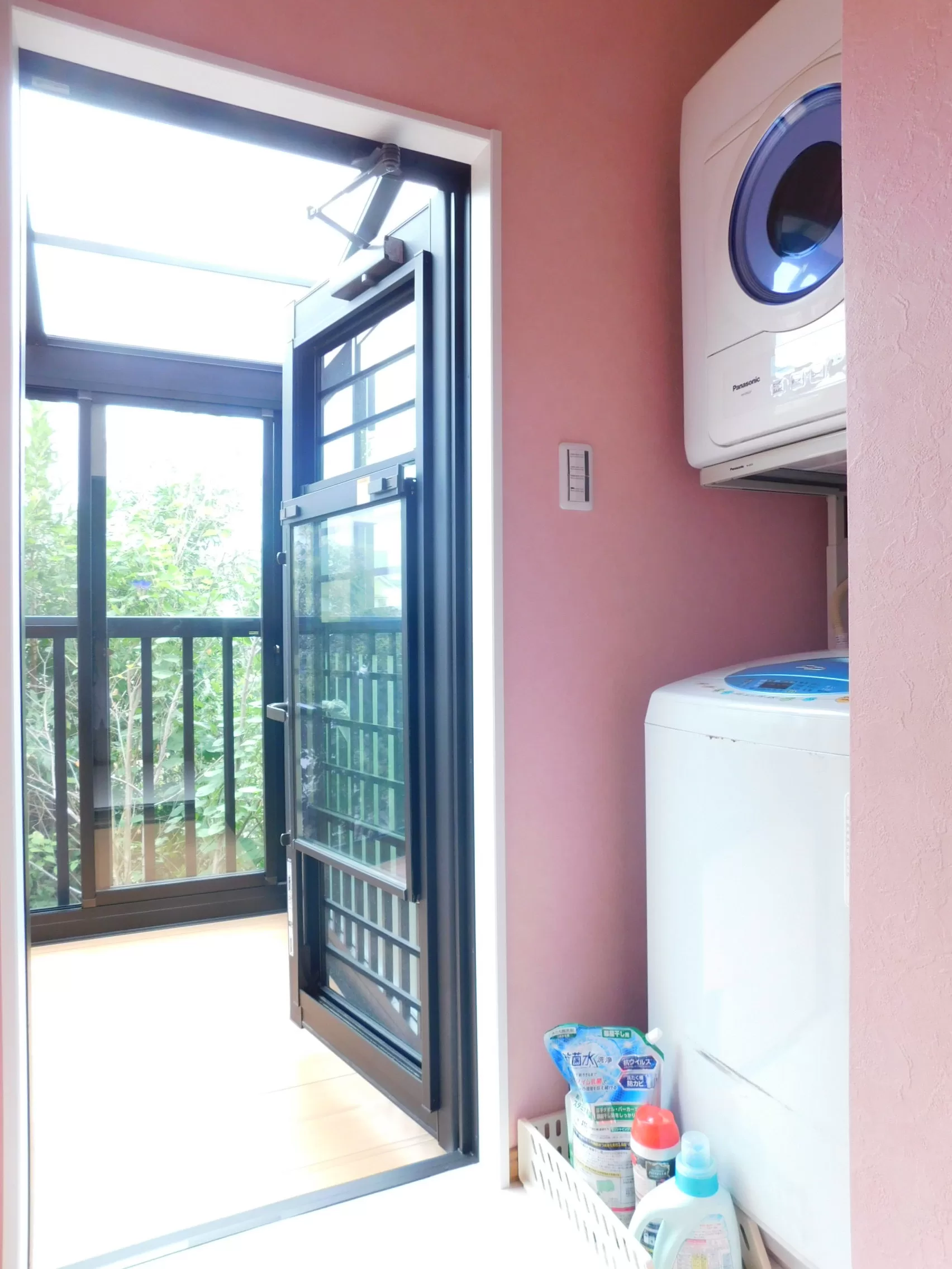 洗濯機は2階の物干スペースの近くに増築して移動しました。1階から上り下りして干していたのがすごく楽になったのではないかと思います。