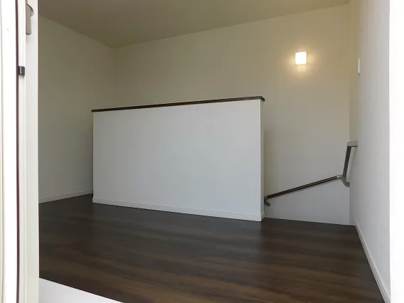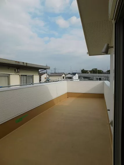 1階に全ての部屋があり、リビング階段を上がると広い防水バルコニーになっています。