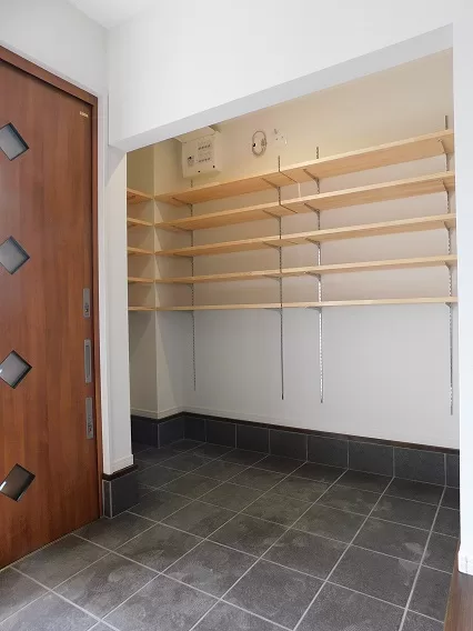 玄関はご主人様のご要望で広くとり横には大きなシューズクロークがあります。