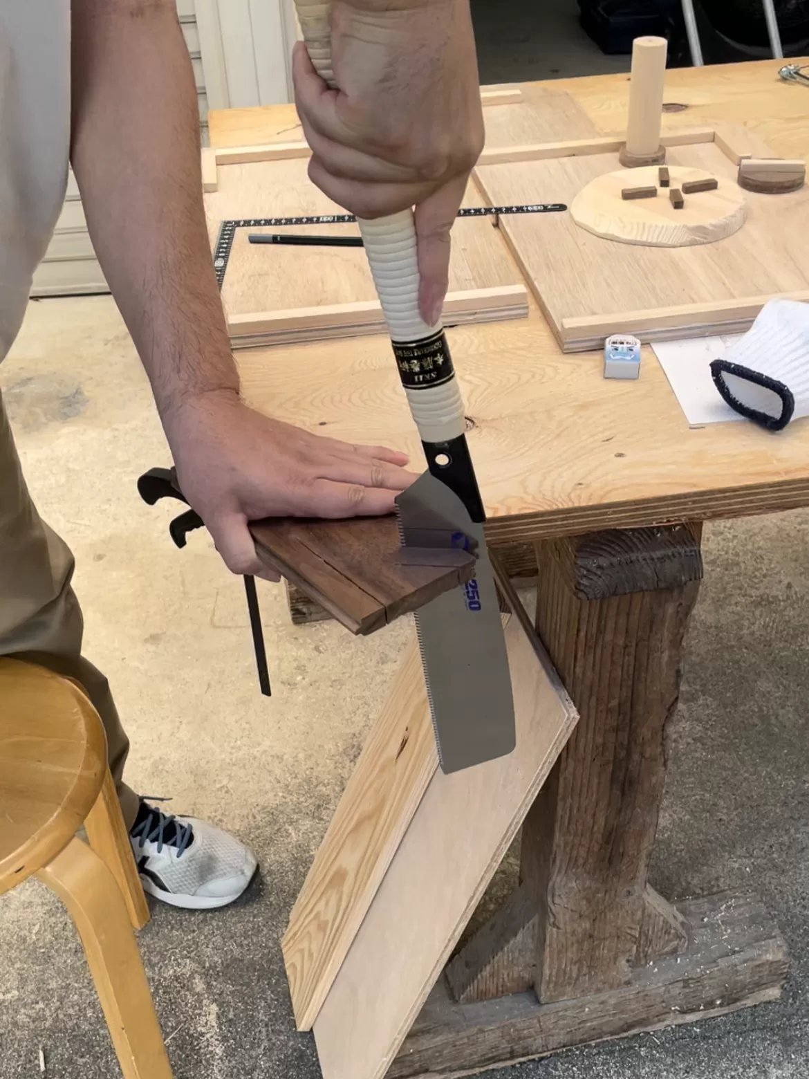 結構な力仕事で、のこぎりや糸のこを使い、蛇口の部分をこだわりの形に切ったり、シンクの部分はボールをはめるので、その形に合わせて天板をくりぬくきました。