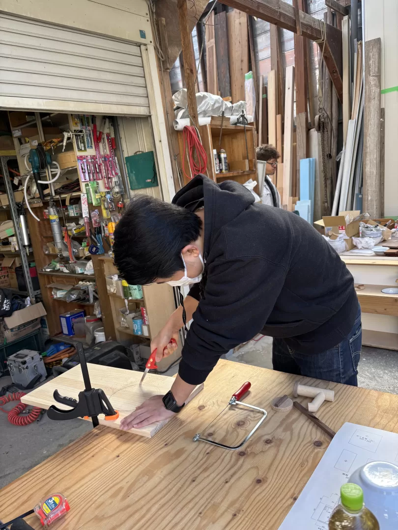 のこぎりを使った作業で苦戦しながらも、シンクの部分をボールの大きさに合わせて丸く切ったり、蛇口の部分をいろいろな形に切ったり、一人一人のこだわりがつまったキッチンになりました。