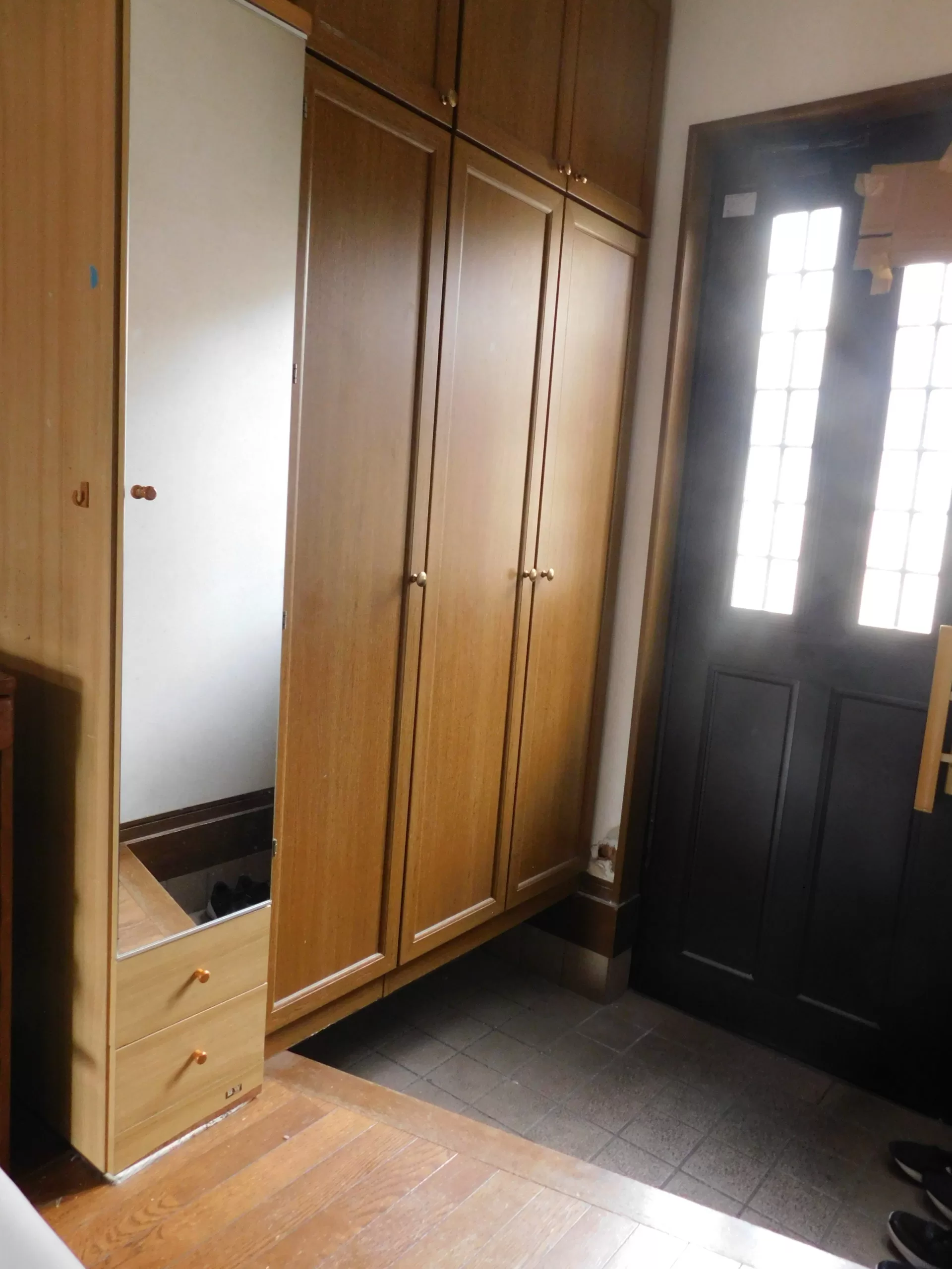 玄関収納はキッチンと合わせて、ウッドワンの収納を取付。