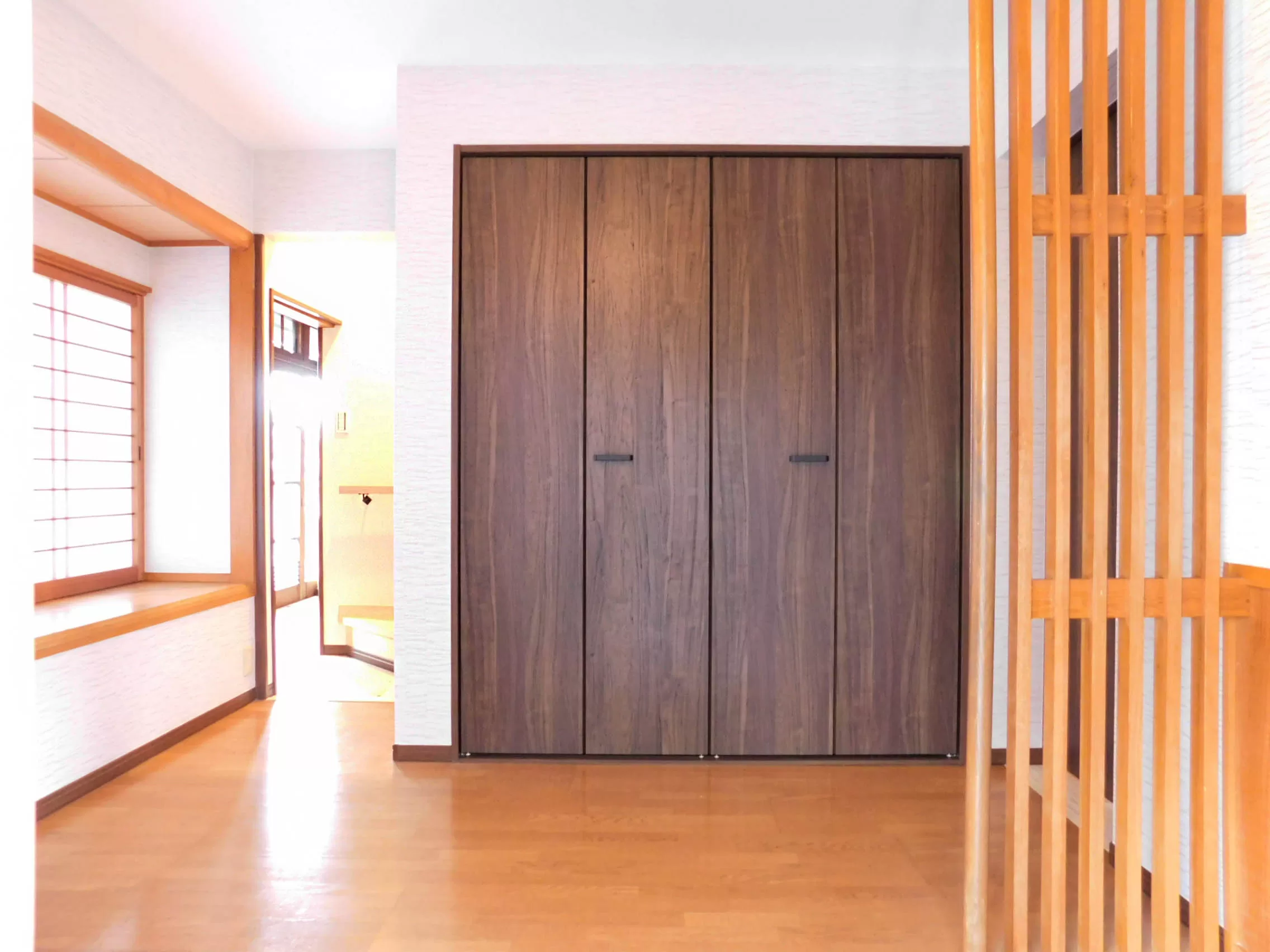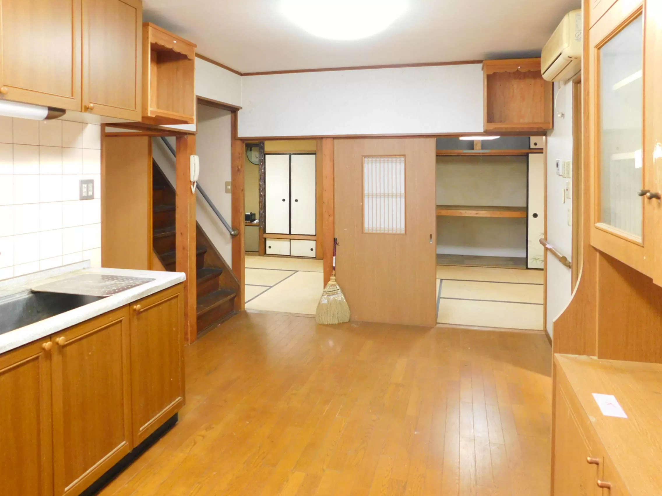 和室1間をリビングに 間仕切り戸と垂れ壁を撤去して無垢フロアパインを貼っています