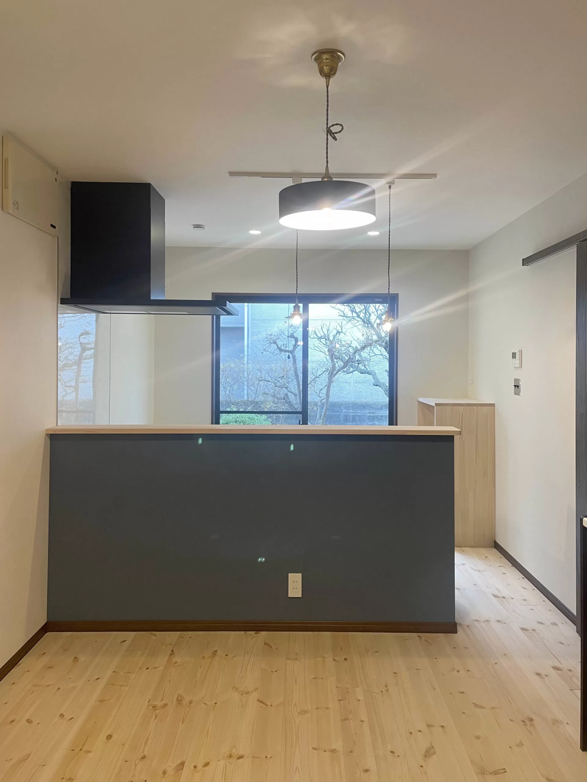 対面キッチンから廻りぐるっとを見渡せます。リビングの一角には3人のお子様が並んで勉強できるスタディカウンターを設置。頑張っている背中が見えて安心です。