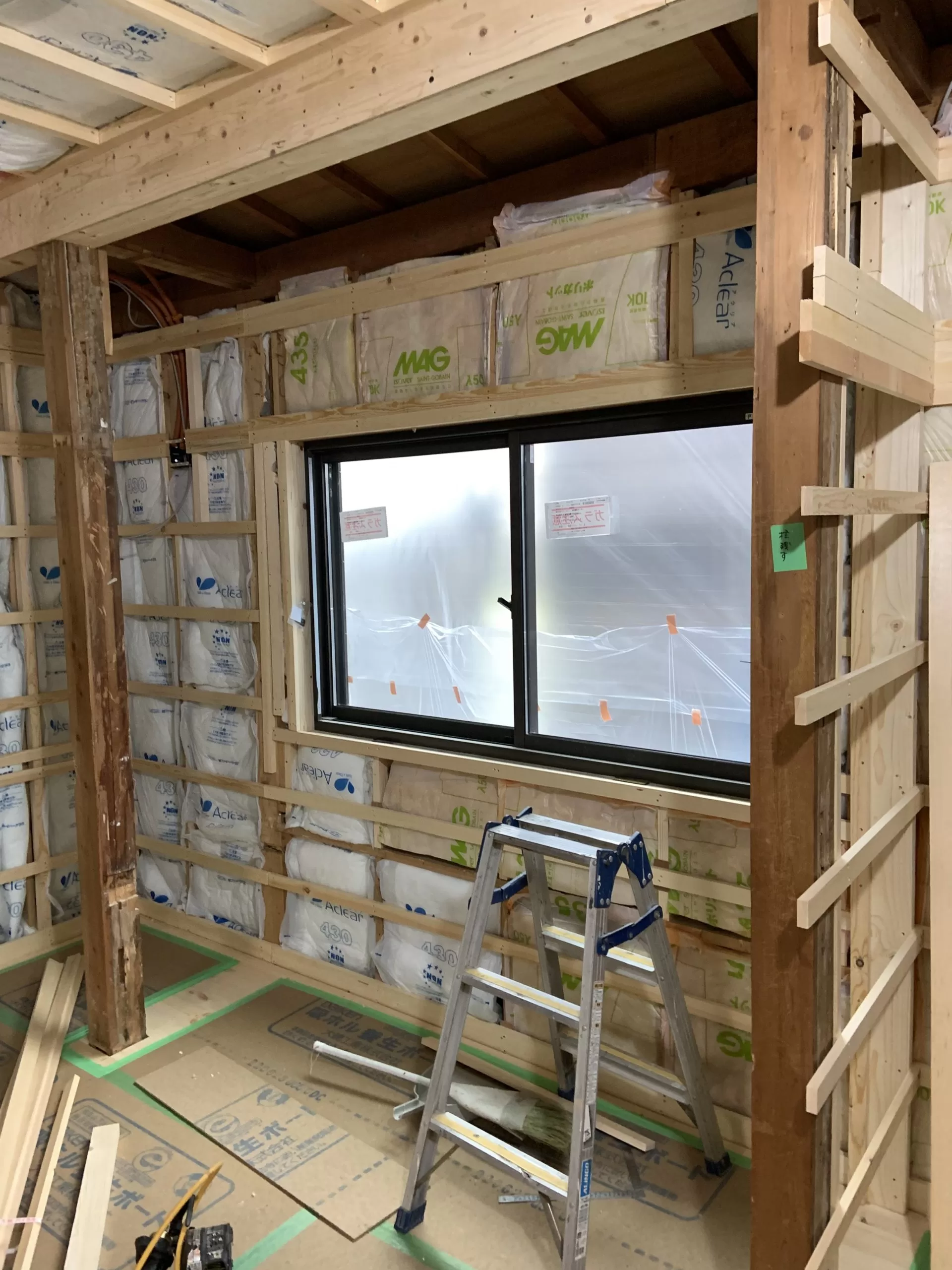 外壁面、天井、床には断熱材を入れて、断熱性の高いサッシに入替しました