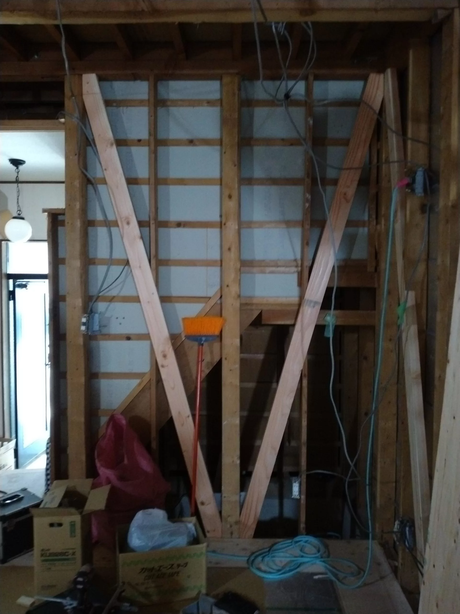 解体後、筋交いがあまり入っていなかったため、お客様に確認したあと、バランス良く筋交いを入れ、補強しました。