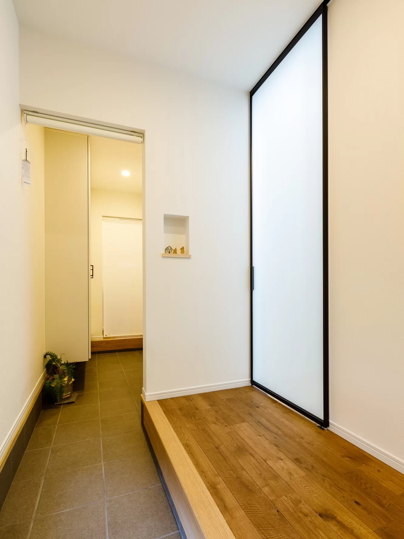 ↑こちらは来客がある時に玄関がいつもすっきりして見えるようにプライベート動線と分けて作られています。