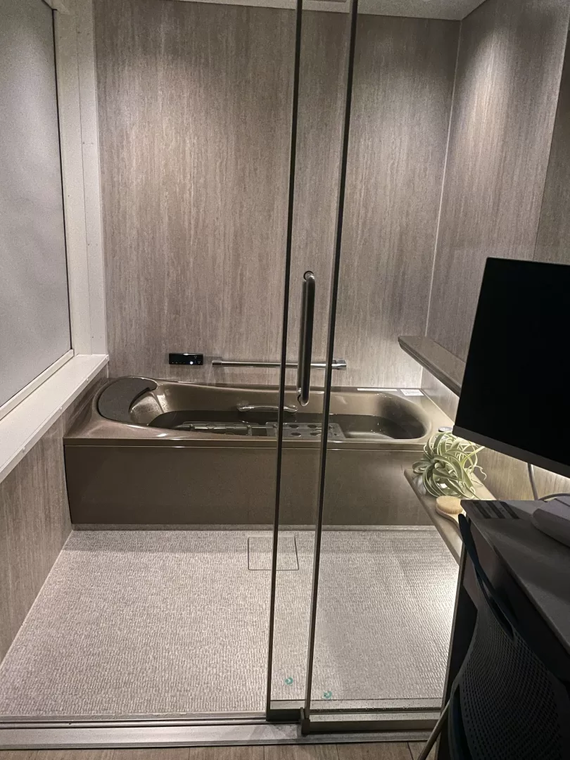 照明の調光調色システムで、リフレッシュモード→リラックスモード→瞑想モード→瞑想ゆらぎモードと自由自在な空間演出で、お風呂の中で眠りそうなほど、リラックスできる空間になっていました。