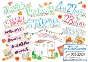 終了 4/27(土)28(日) 吹き抜けのある”やさしい家”完成見学会を開催いたします。