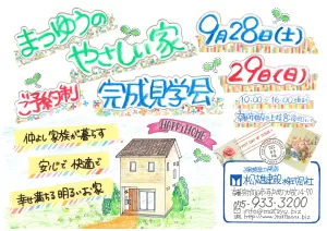 9月28(土)29(日)吹き抜けのあるやさしい家”完成見学会開催させていただきます。