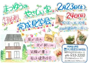 2/23(土)24(日)自然と寄り添う”やさしい家” 完成見学会 開催日 2月23日(土)24日(日) 時間 10:00~16:00 場所 向日市鶏冠井町八ノ坪 年初恒例!まつゆうのおもちつき大会2019を開催させて頂きました。 開催日 1月14日 9/1(土)2(日)雑貨が似合う”やさしい家” 見学会開催します。 開催日 9月1日・2日 時間 10:00~16:00 場所 長岡京市奥海印寺 « 1 … 6 7 8