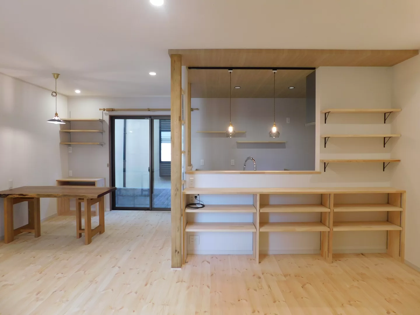 まつゆうの木の雰囲気が好きで、1Fは無垢のレッドパインのフロアにされ、造作家具もふんだんに使いました。